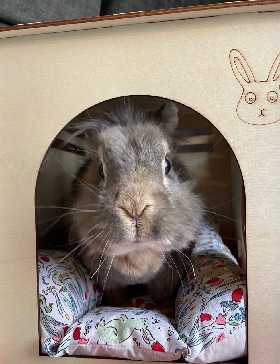 "So cute, my bunny loves her new bed! It fits perfectly in the house I just got her ❤️"